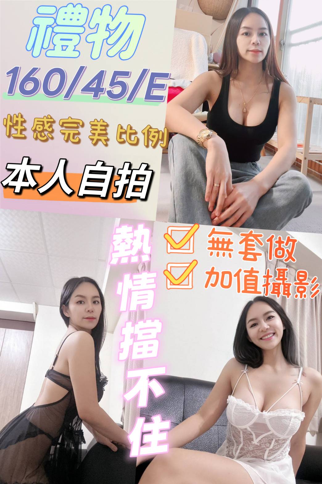 無套吹、 共浴、親嘴、舔蛋、胸推、69品鲍、奶炮、 按摩、情趣用品 (需自備)